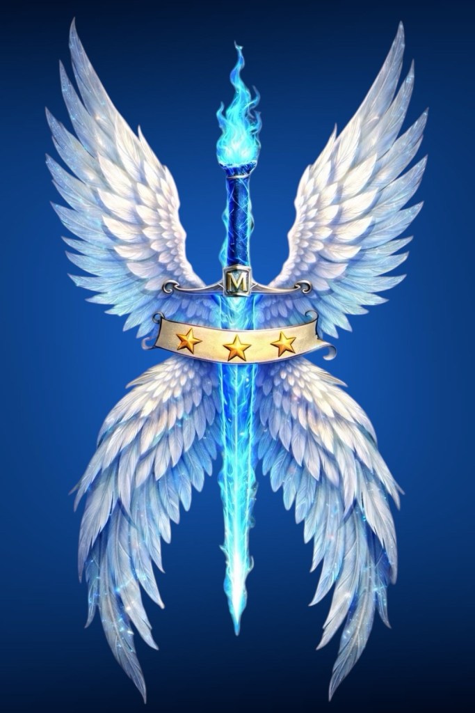 Le 12 janvier, lors d’un moment de canalisation, j’ai reçu l’inspiration de cette image : une épée ailée traversée par une flamme bleutée. Je l’ai concrétisée sans chercher à comprendre, simplement en suivant le flux.